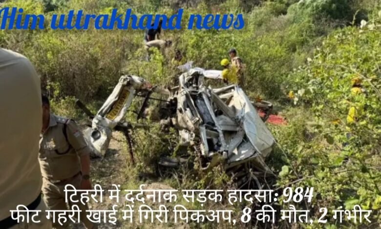 टिहरी में दर्दनाक सड़क हादसा: 984 फीट गहरी खाई में गिरी पिकअप, 8 की मौत, 2 गंभीर